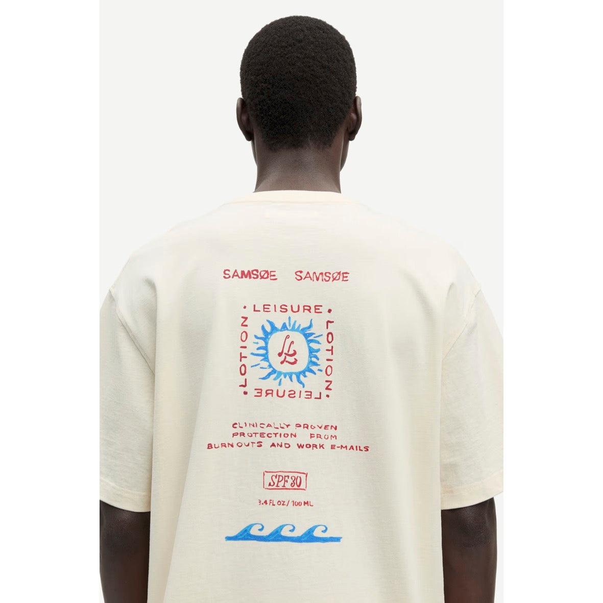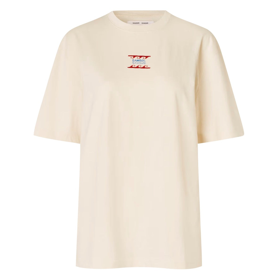 Short-sleeved jersey T-shirt with a regular fit and dropped shoulders. Rib-knitted crew neck. Printed graphic at the chest and printed Samsøe Samsøe branding on the back.