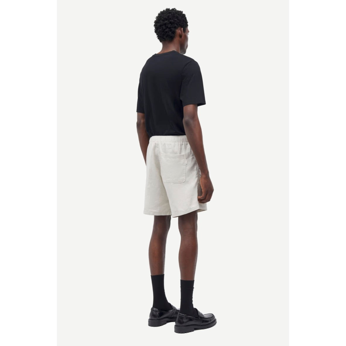 Mid-waist shorts with a regular fit. Elasticated drawstring waistband. Side slit pockets on the front and patch pocket on the back.