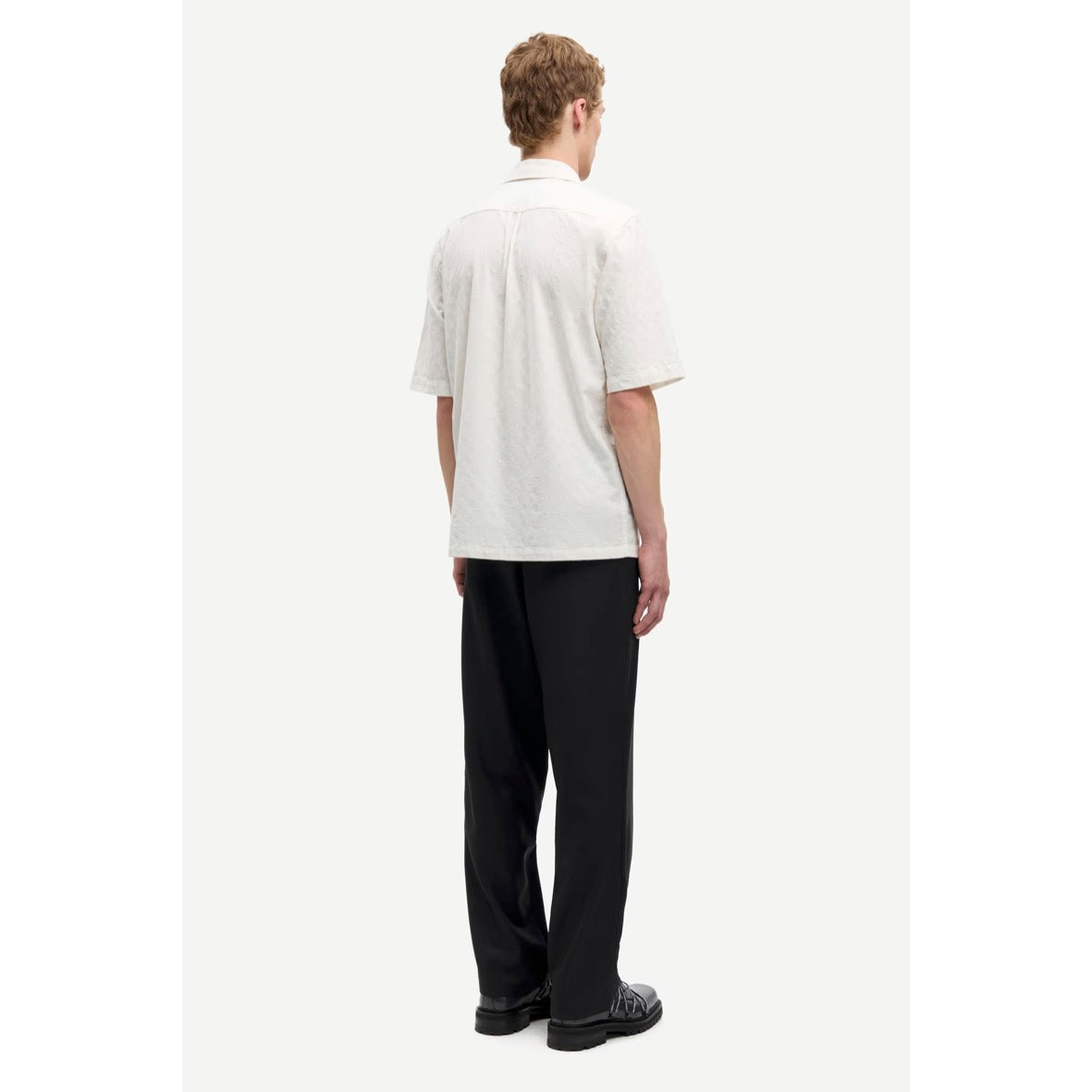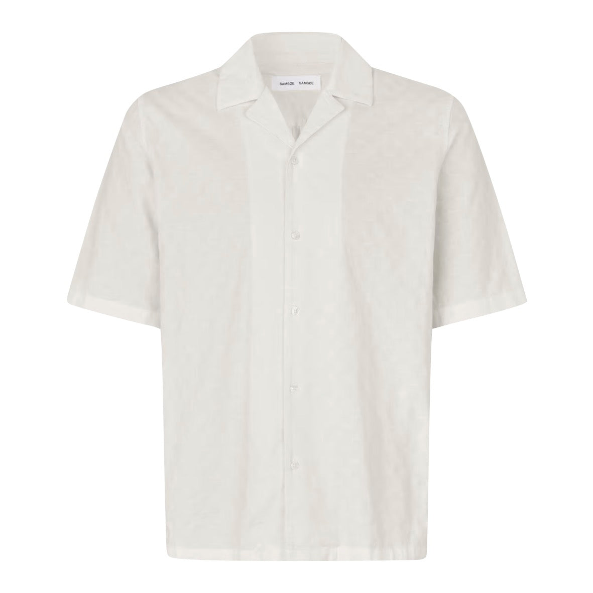 Short-sleeved shirt with a regular fit. Button closure on the front. Open revere collar. Neck yoke seam.