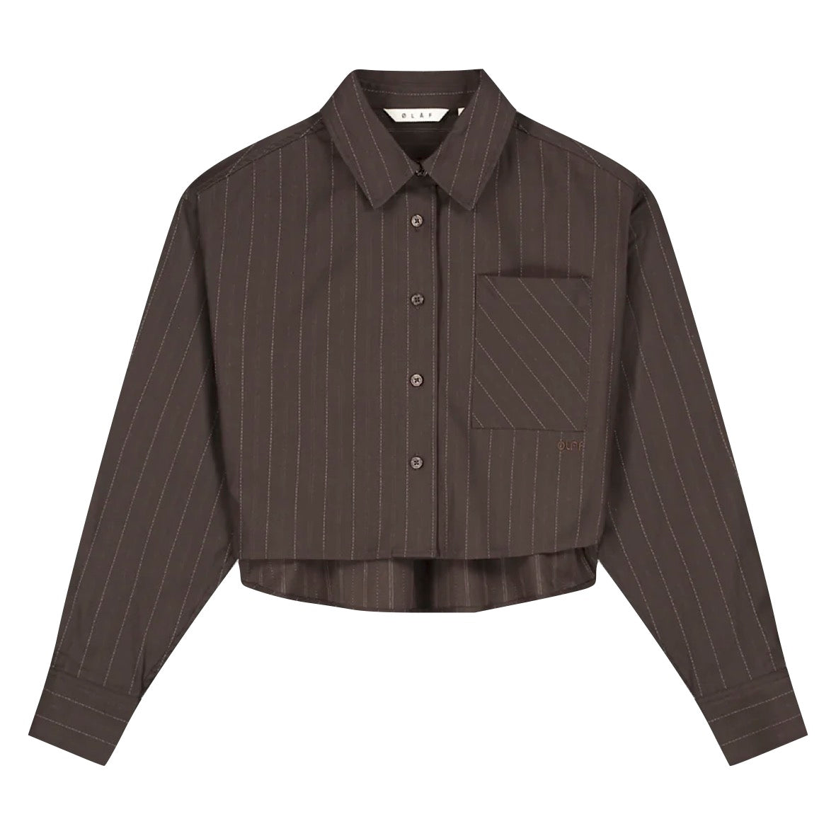 The Pinstripe Cropped Shirt in Hot Fudge is a modern take on tailoring, featuring a cropped silhouette and diagonal pinstripe detail on the chest pocket. Crafted from cotton, it’s finished with tonal logo embroidery for a clean look.
