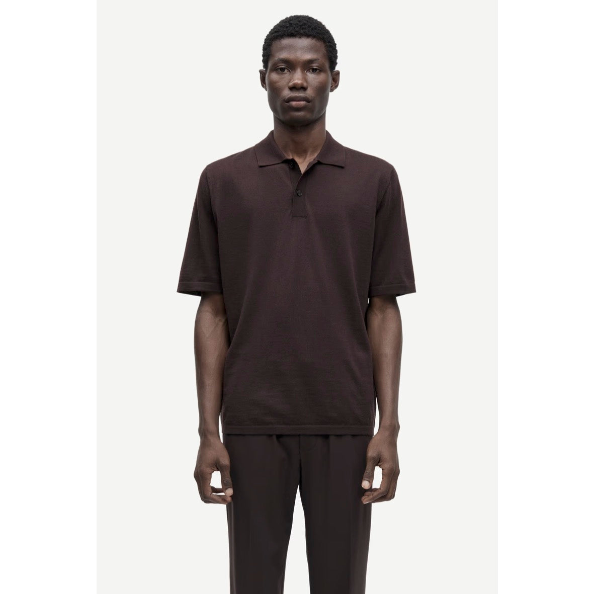Knitted short-sleeved polo shirt with a regular fit. Short button closure on the front. Main material made from a blend of extrafine wool from the merino sheep and recycled polyester.