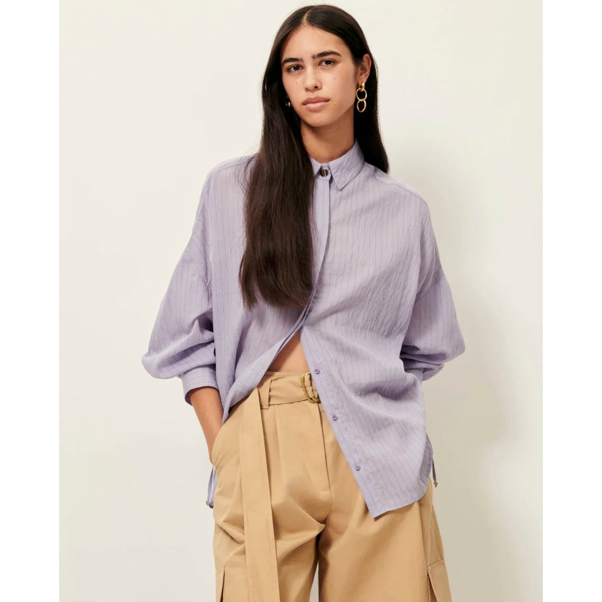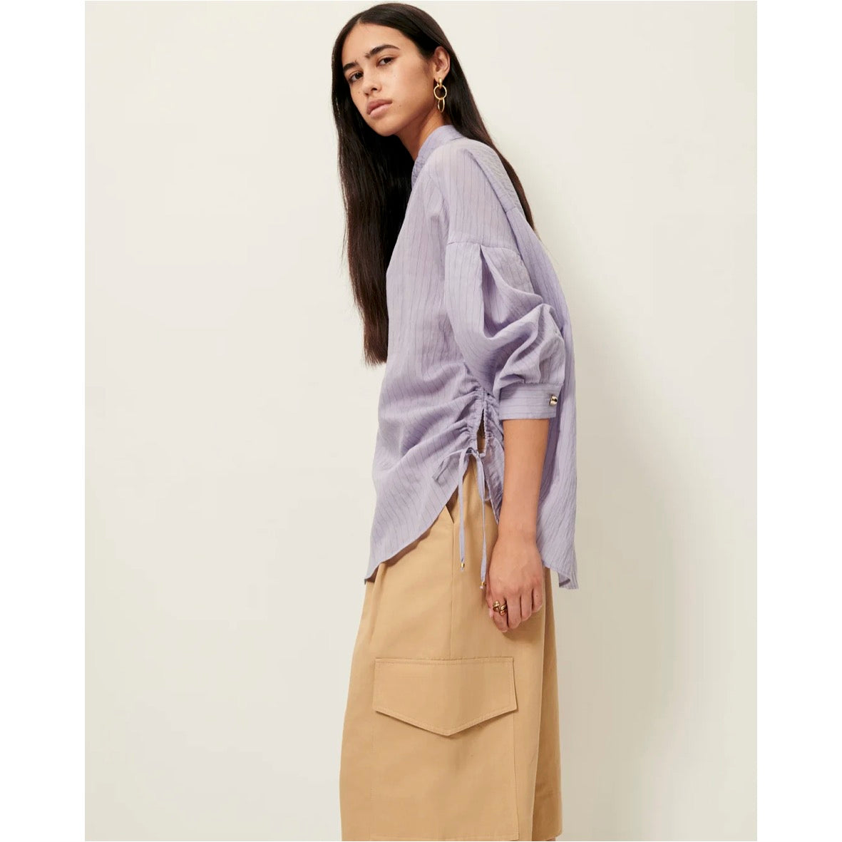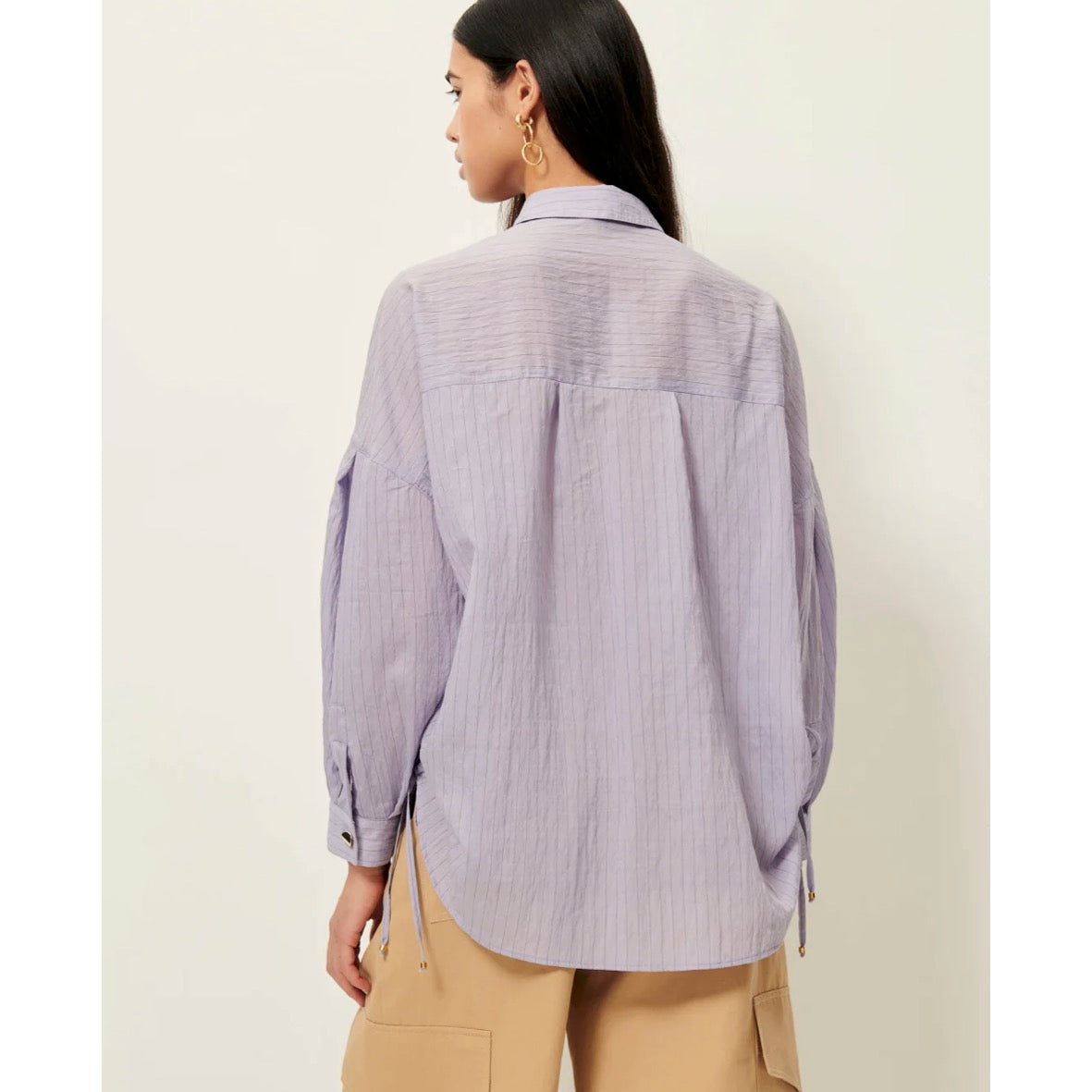 Loose-fitting shirt in lyocell voile with contrasting thin stripes.Side ties in the same fabric.