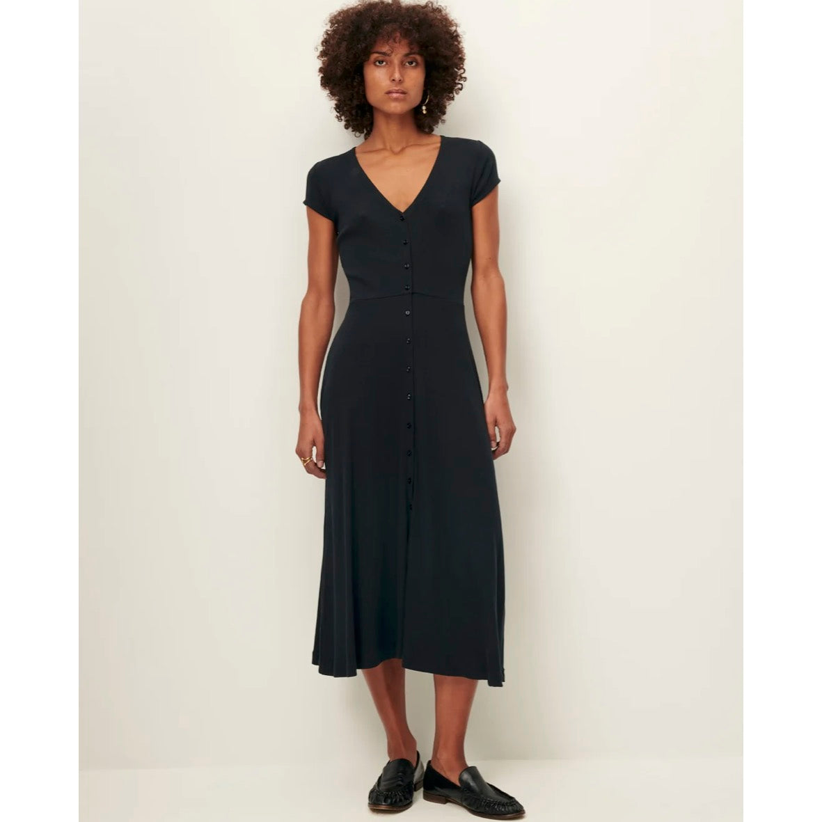 Midi dress with a V-neckline in ribbed jersey.