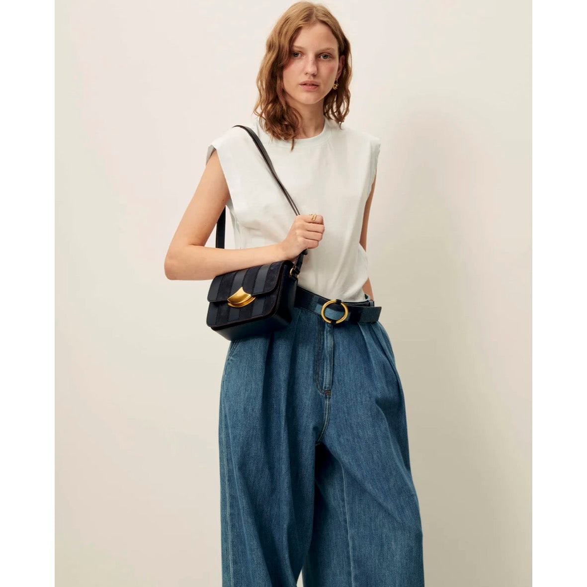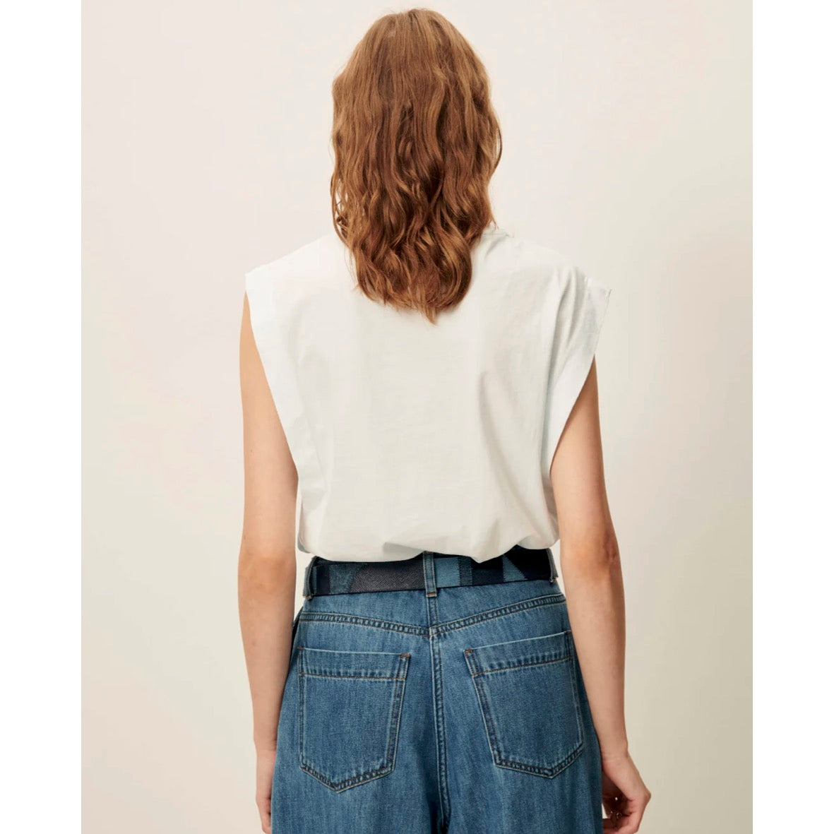 Sleeveless pleated T-shirt in pigment-dyed jersey, hand-crafted and dyed in Portugal.