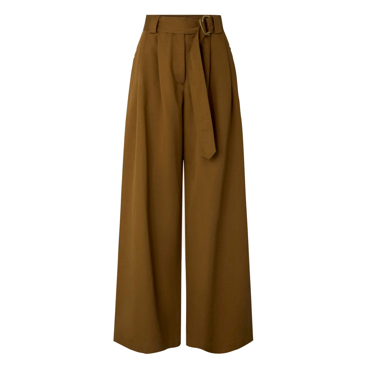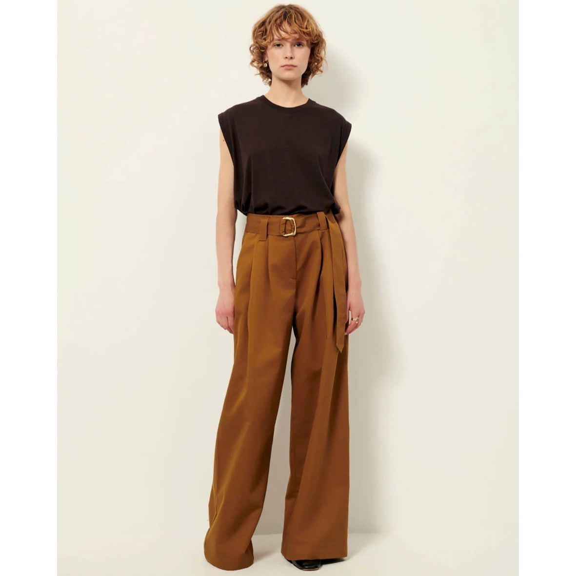 Loose-fitting, high-rise trousers with pleats below the waistband, made from soft, compact twill gabardine woven in Spain.Removable belt in the same material.